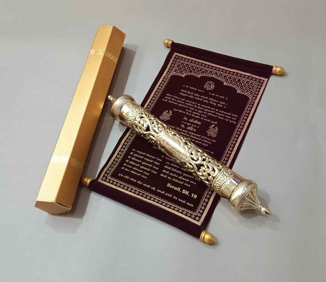 Scroll cards offer a unique, elegant touch to wedding invitations, presented in decorative tubes or boxes. Customizable and sophisticated, they make a memorable statement for your special day.